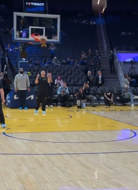 NBA官方社交媒体晒出视频,库里在热身时大秀三分投射,连中logo三分。