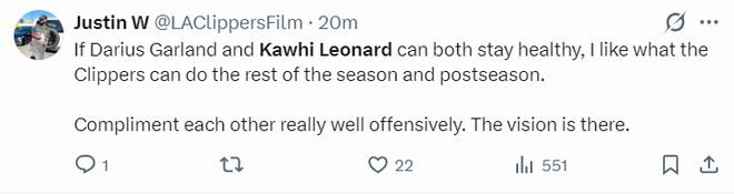 美媒盛赞加兰与伦纳德保持健康的话这支快船在本赛季剩余时间与季后赛能有所作为,而且健康的伦纳德极具侵略性,他健康时就是无解的存在。
