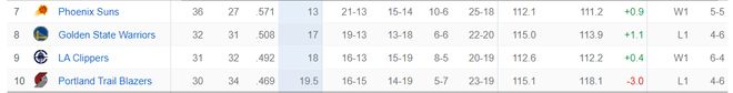快船逆转灰熊19分,勇士则5分惜败雷霆,这两队的胜场差已经缩小到只差1个,快船31胜32负,勇士32胜31负,快船反超勇士指日可待。